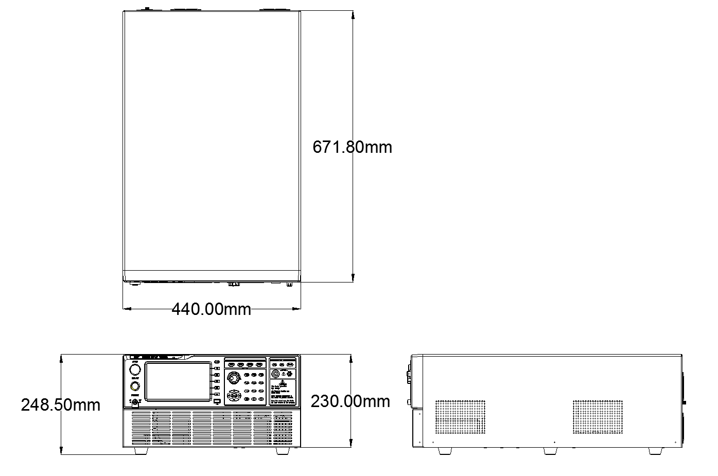 RK9974-20/RK9974-AC20/RK9974-DC20程控超高压测试仪三视尺寸图